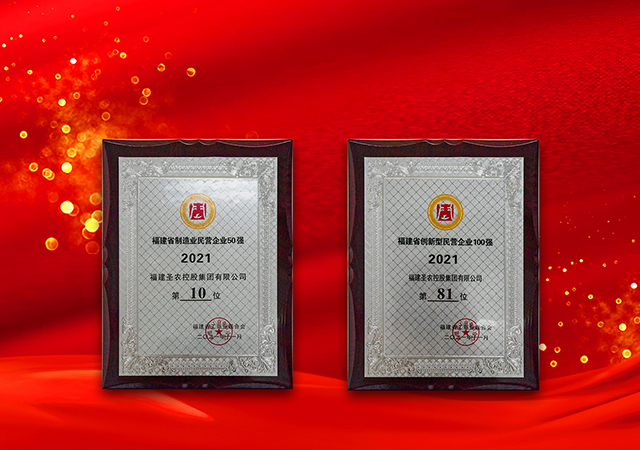 10月15日,福建省工商联在三明发布“2021福建省民营企业100强”“2021福建省创新型民营企业100强”“2021福建省民营企业制造业50强”榜单。福建圣农控股集团有限公司荣登福建省民营企业100强榜单,由去年的第38位提升至第19位。榜单同步评选出福建省制造业民营企业50强名单,圣农集团位列第10。