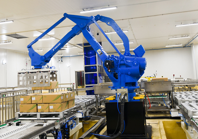 在圣农食品6厂全自动包装线,记者看到自动称量、制袋、封口、喷码、金检、X光检测,行云流水。封箱、堆垛,堆垛机器人一气呵成……